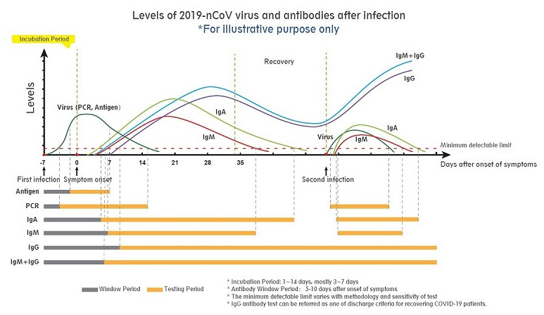 Depending on the time of the appearance of coronavirus and the presence of the two types of antibodies in the human body (IgG or IgM) designed to fight it, PCR and antigen tests are suitable tests in the early onset period (WHO guidelines recommend the use of PCR and antigen tests for triage), while antibody tests are suitable later on when antibodies are produced over days to weeks after infection with the virus and in even larger numbers with a second infection. In addition, the studies of neutralizing antibodies, those that prevent or treat disease, can aid in the development and evaluation of vaccines.