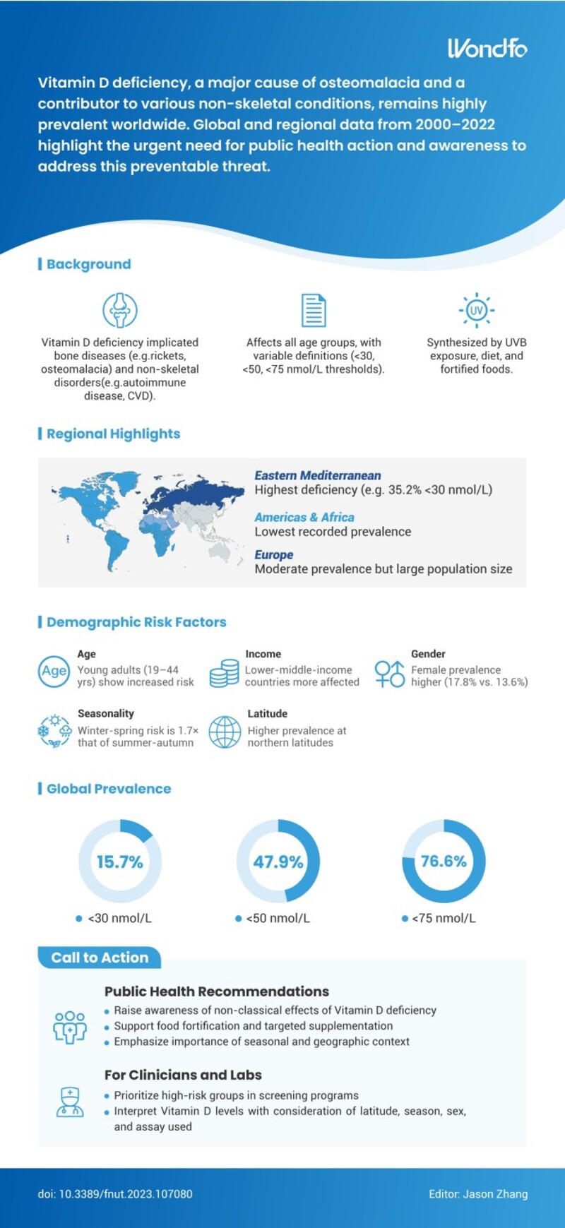 Vitamin D deficiency remains a widespread global health issue and is a major cause of osteomalacia while contributing to a range of non-skeletal conditions. Global and regional data collected between 2000 and 2022 highlight the urgent need for public health action and increased awareness to address this largely preventable condition.