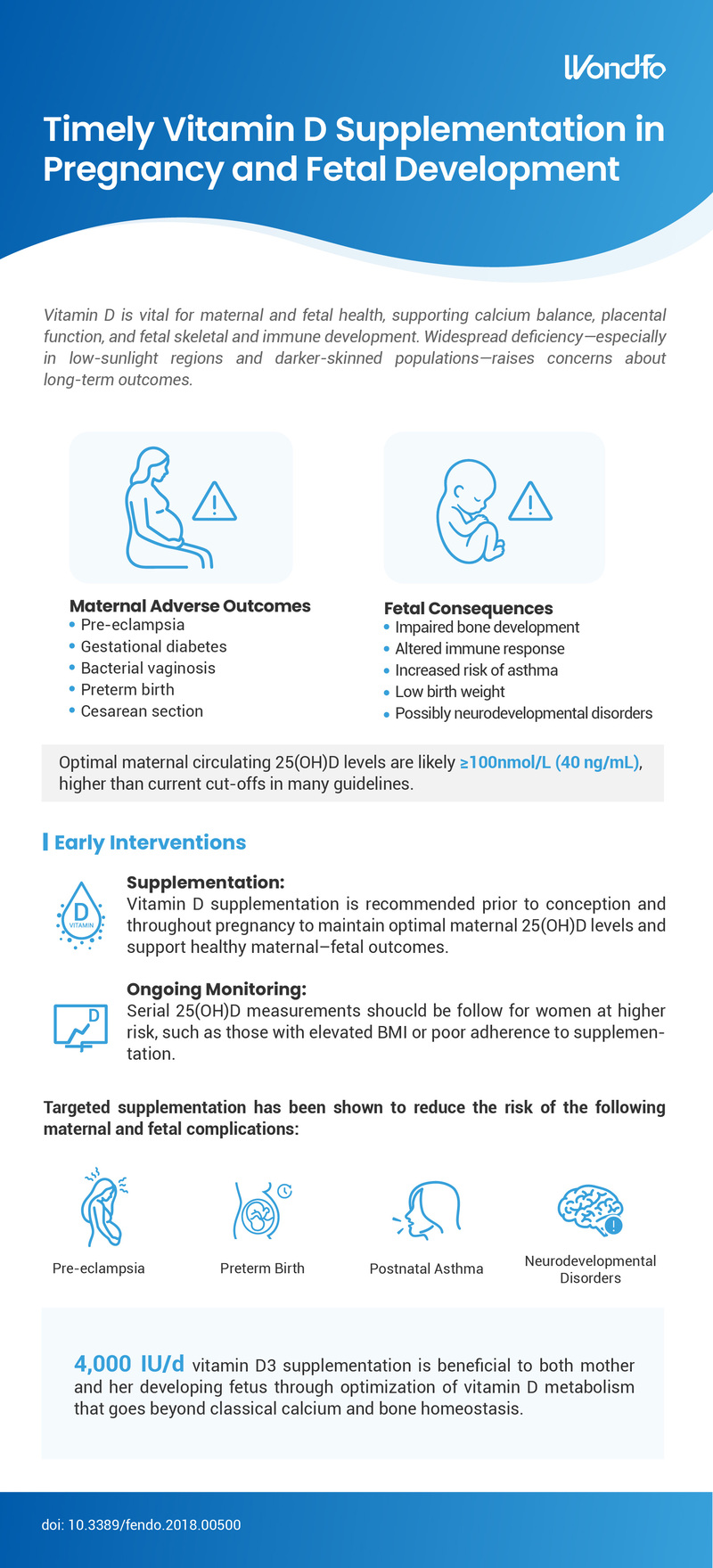 Vitamin D plays a critical role in maternal and fetal health throughout pregnancy. Beyond its well-established function in calcium and bone metabolism, vitamin D is increasingly recognized for its involvement in placental function, immune modulation, and fetal growth and development. Emerging evidence suggests that timely assessment and appropriate supplementation of vitamin D during pregnancy may significantly influence both short- and long-term maternal–fetal outcomes.